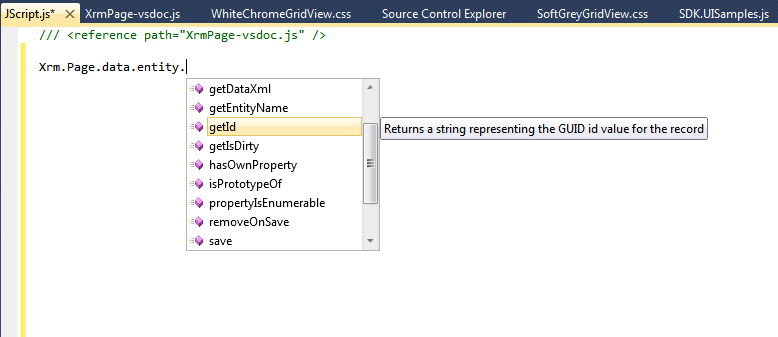 Follow the instructions in the following post to have the IntelliSense while writing JavaScript for CRM 2011.