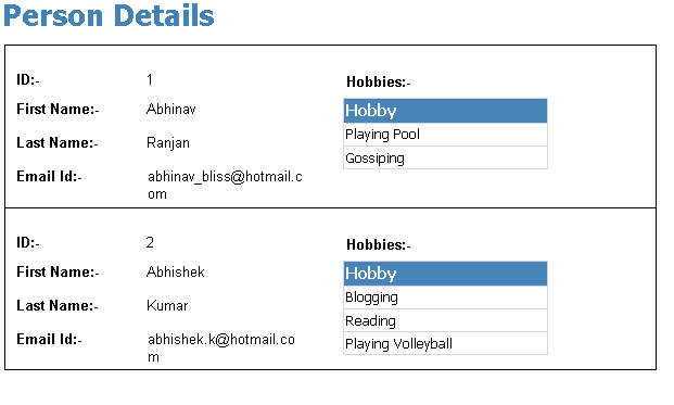 Suppose these are our two tables, Person and Person Details, having one to many relationships to each other.