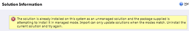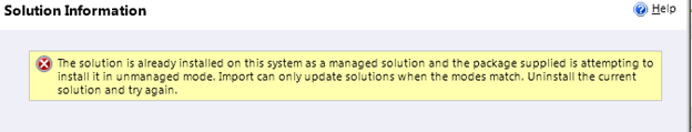 While importing the managed solution that have already been imported into the system as managed we get the following message