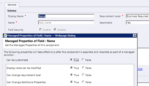 So by default the “Can be customized” option is set to true and all the other options are also set as true and disabled. We can’t edit it. So we have no control over the system entities, even if we export them as managed they can still be modified or further customized.