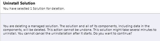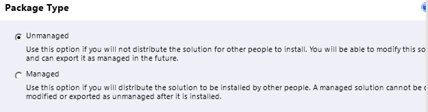 For unmanaged solution we get the following message.