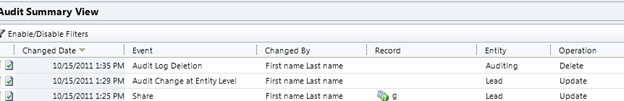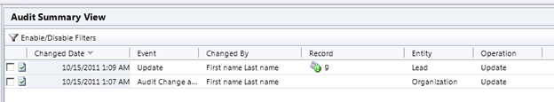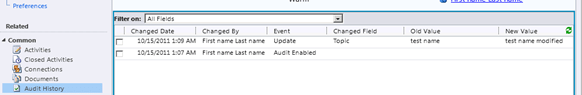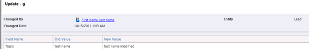 Apart from change in the name of the topic we can see one more record in our Audit History that shows when the Audit was enabled for the Entity.