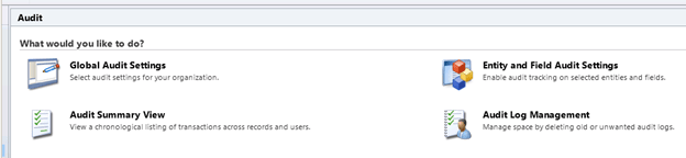 - Audit changes at attribute, entity and organization level: –