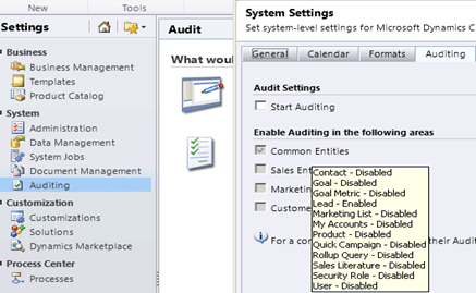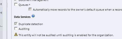 For the entity it is not enabled by default, we need to check the Auditing checkbox to enable it. However there we again see a message below that asks us to enable auditing for the organization first.