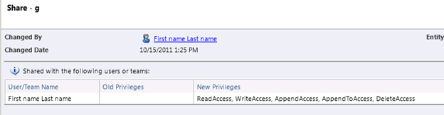 - Changes to Shared Privileges of a record:-