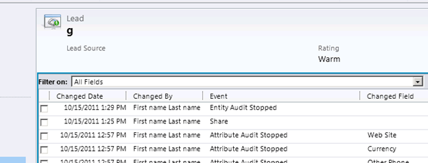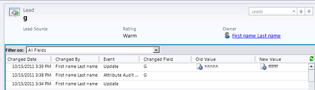 However we can’t see old value new value there as we have not enabled that field for auditing. So let us open that field from customization area and enable auditing for it and change the lookup value in the lead entity.