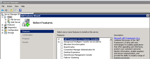 Before running the setup, first we added the .NET Framework 3.5.1 Features from Server Manager.