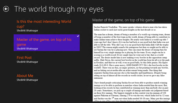 Today I created my first Metro Style App, A Blog Reader that would let me read blog posts of some of my close friends who love blogging.
