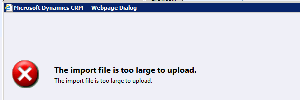 3 thoughts on ““The import file is too large to upload” error while importing csv file of more than 8 mb in CRM 2011.”