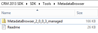 I was playing around the new CRM 2013 SDK and thought I’d spend some time one the revamped metadata browser. Like in the CRM 2011 SDK, the Metadata browser is provided as a Managed Solution located in the folder “Your SDK FolderToolsMetadataBrowser”