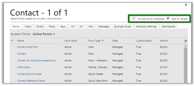 Create a solution named Test Solution with Contact entity in it. (with Add All Assets option)
