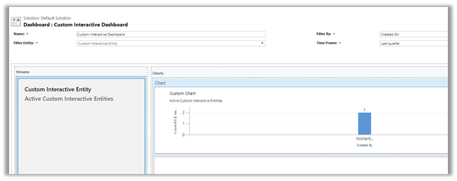 Our custom dashboard for our custom entity with Card form on left and the chart on right.
