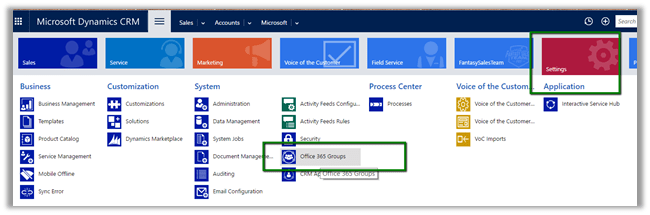 Once installed, go to Settings – Office 365 Groups to configure Entities.