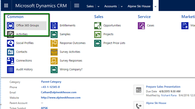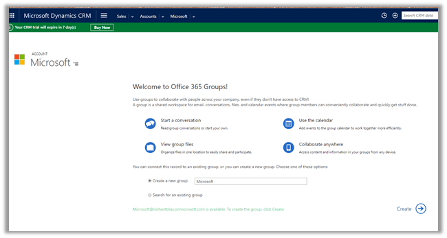Open the Account Record and navigate to Office 365 Groups.