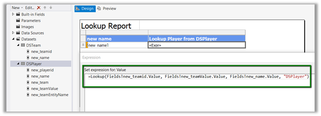 Let us create one more dataset DSTournament and bound it to a new table. Which have one column which lists the Tournament name and the other column that does the multilookup to DSPlayer to get the player name.