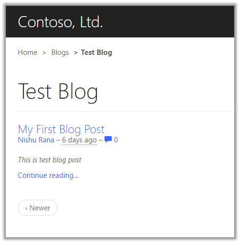 • Login to the portal and open the test blog. The portal user will have the rights to edit, delete, new etc.