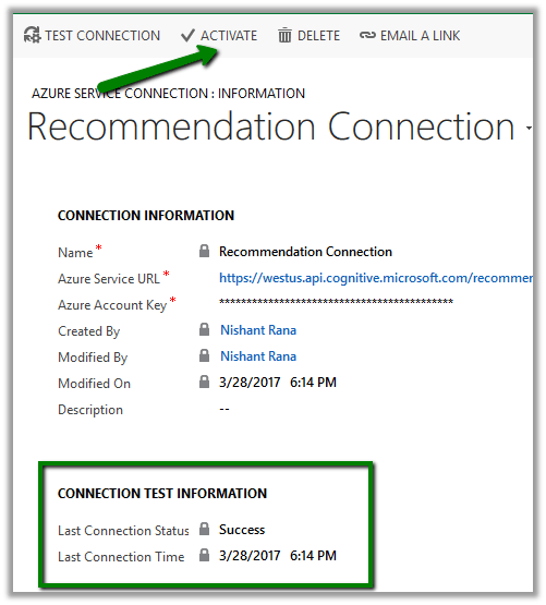 On Successful connection, we’d see Success message for Last Connection Status. Click on Activate to enable the connection.