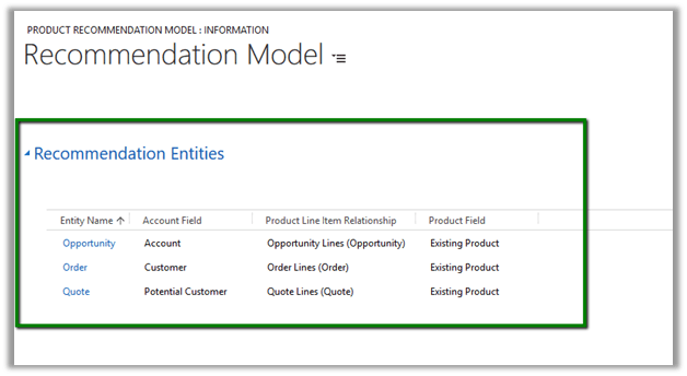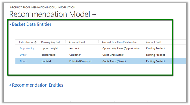 The model will have Basked Data Entities already defined. We can edit\add new\ delete these existing configuration records for Basked Data Entities. Basked Data Entities recommendations are based on which products appear together.
