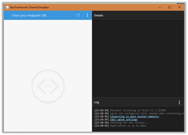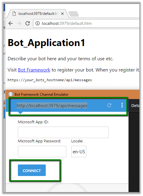 Enter the URL and click on Connect. We will leave App ID and Password as blank as we are testing it locally.