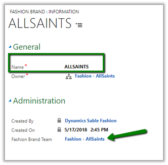 And for owner id i.e. team GUID we had to do a lookup on the Brand entity.