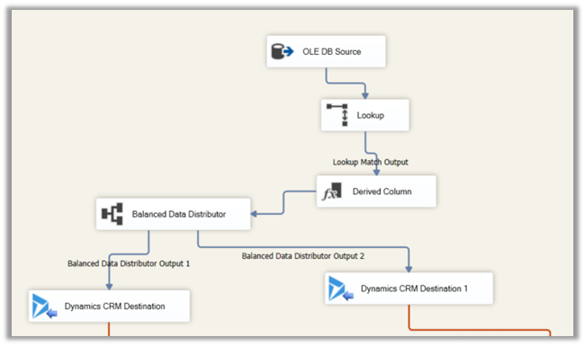 Added 2 Data flow task in the Control Flow, one for Caching the Brand entity’s detail and other for using the fetching data from SQL DB, Lookup Transformation task and inserting the data into CRM.
