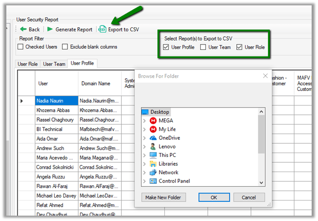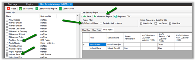 User Security Report allows us to generate reports for security roles and field security profile assigned to the user directly or through team for all the system users or the selected system users.