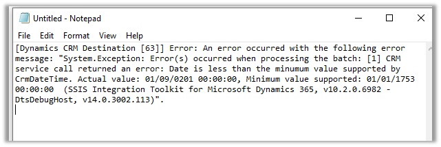 3 thoughts on “Fixed – CRM service call returned an error: Date is less than the minimum value supported by CrmDateTime. Actual value ‘xyz’- Minimum value supported: 01/01/1753 00:00:00 in SSIS (Dynamics 365)”