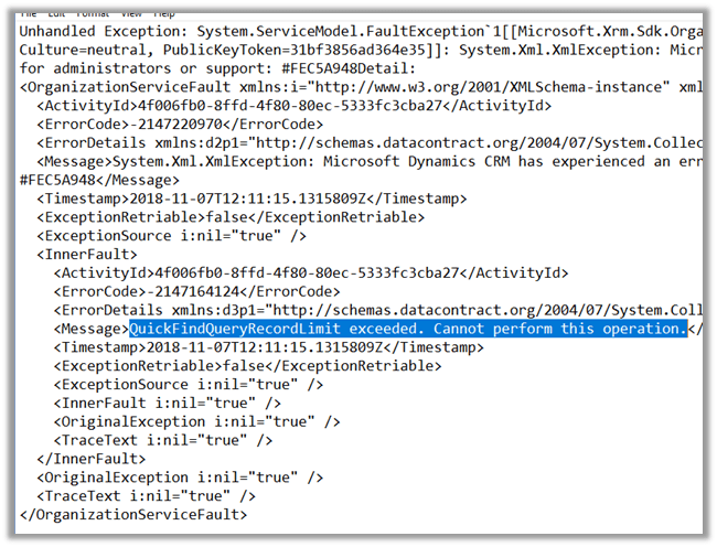 One thought on “QuickFindQueryRecordLimit exceeded. Cannot perform this operation error in Dynamics 365 CE”