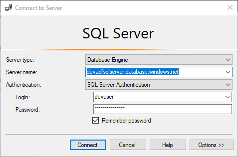 - Let’s connect to the Azure SQL Server using SSMS. On clicking Connect a new pop up will open where we need to put Azure subscription credential to login.