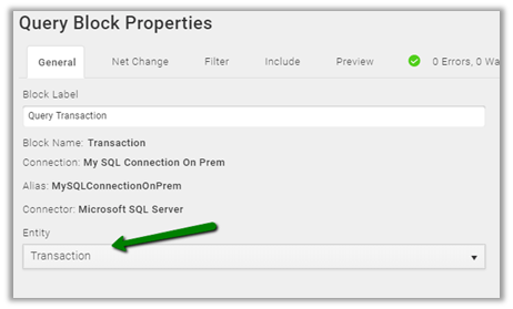 For Query Block, we have selected Transaction Table as Entity