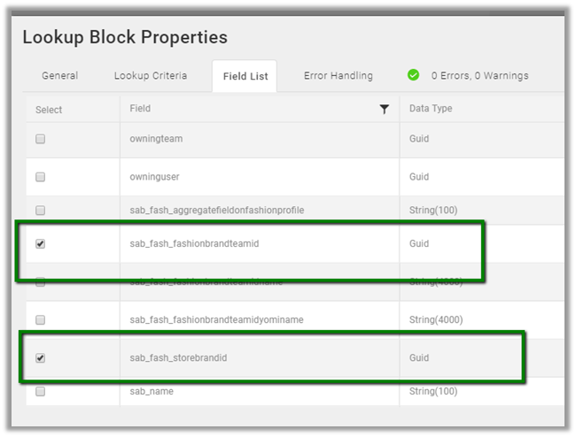 For Field List, we have selected Team GUID field and Brand GUID which will be used for creating the transaction record.