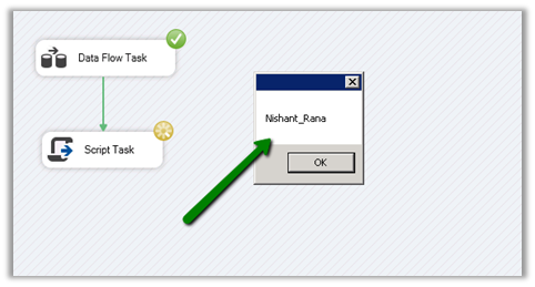 Now within the Script Task in the control flow, we are using a message box to show the value of that variable.