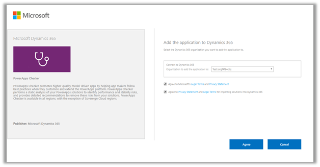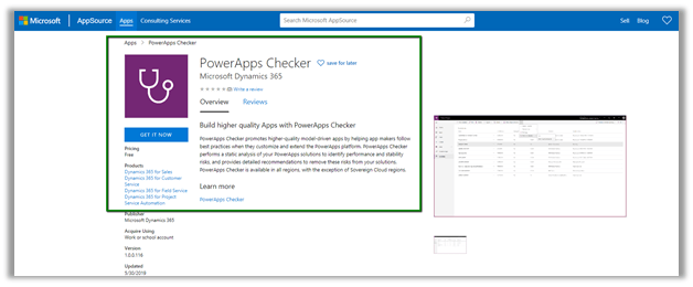 Click on GET IT NOW from the AppSource, specify the instance and the PowerApps Checker Solution will be installed in that Instance.