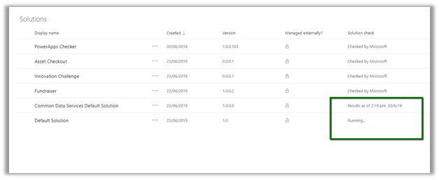 After the installation is done, we’d see the Solution checker menu enabled for the unmanaged solution.