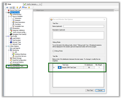 Finally, we can click on Run Test to run our test configured. We can also run the test from Run and Monitor Test Options