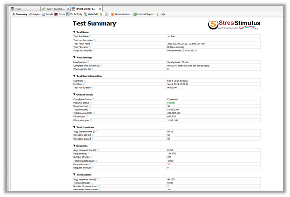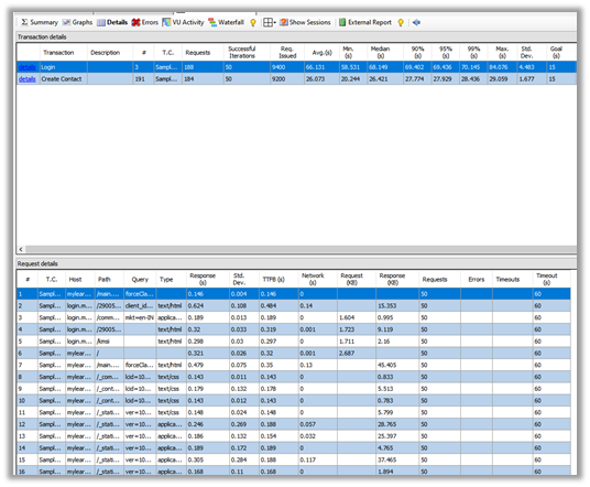 Here we have specified Steady Load with 50 Users. The other options available are Step Load, Peak Load and Custom Load. We can request trial to receive 7 day license, which allows us to specify 50 VU, else the download version is limited to 3 VU.