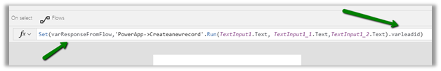 We are using the Set function to set the variable varResponseFromFlow with varleadid output.
