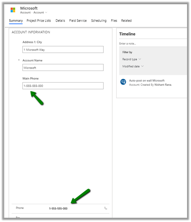 Changing the value in the Phone field in the form and saving the form changes the value inside the canvas app form control.