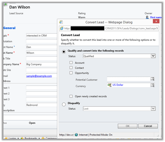 Qualify lead dialog box à