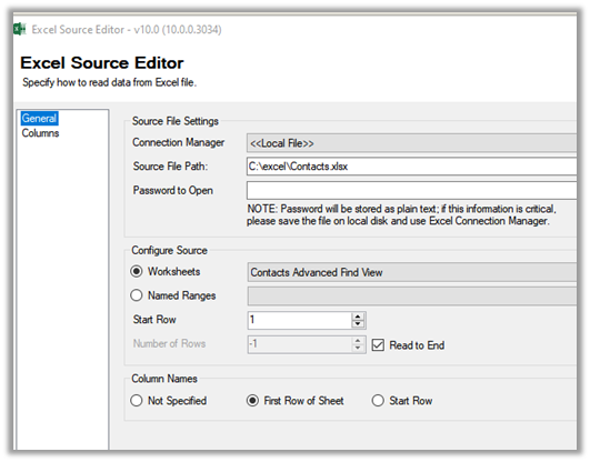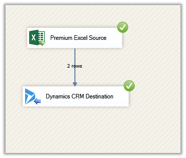Create a new SSIS package, add the Excel Source component and Dynamics CRM Destination component in the Data Flow.