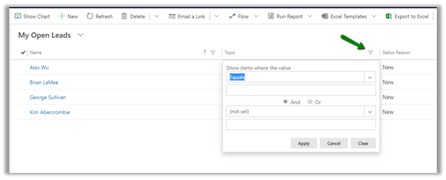 The filter option next to the + button allows users to easily filter and find the appropriate records.