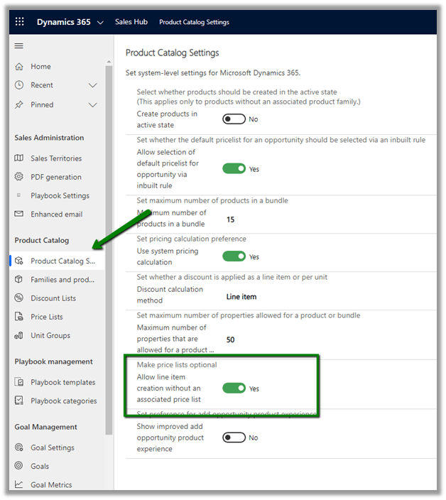 Go to Product Catalog Settings and set Price list optional and click on Apply as below.