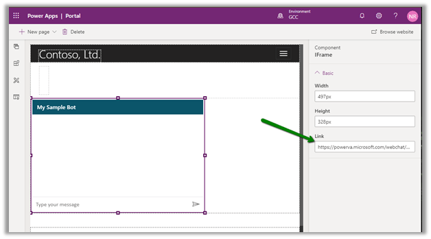 Within Power Apps Portal, we can add the bot to the Iframe Component as shown below