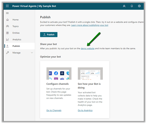 In the last post, we saw how to create a simple bot, now let us see how we can publish it.