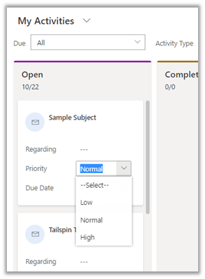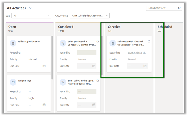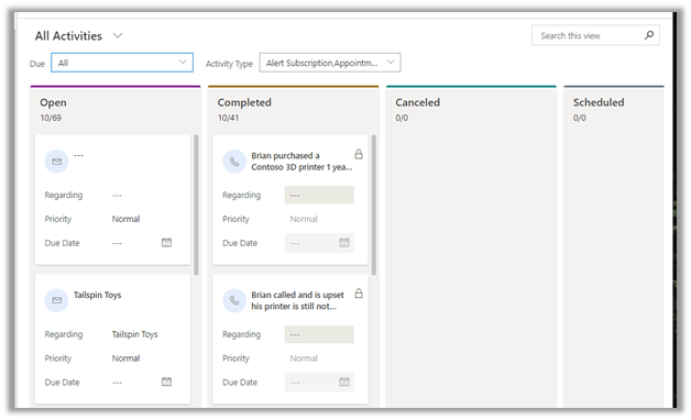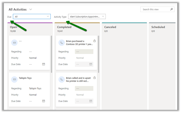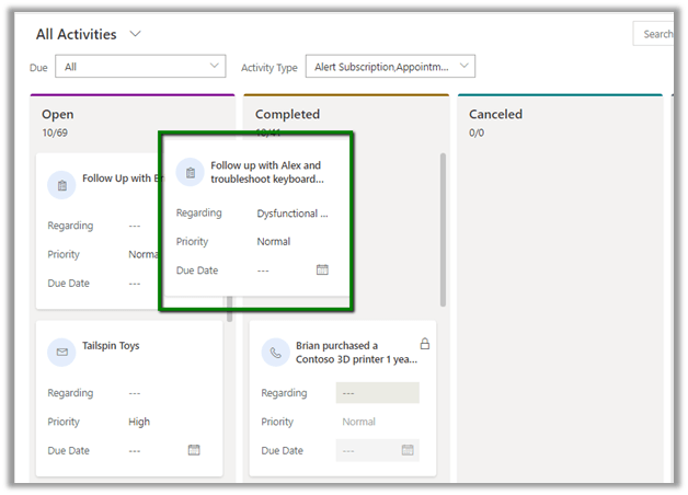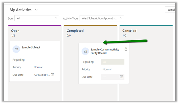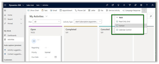 Similar to the Opportunity entity, we can add a Kanban view to Activities.