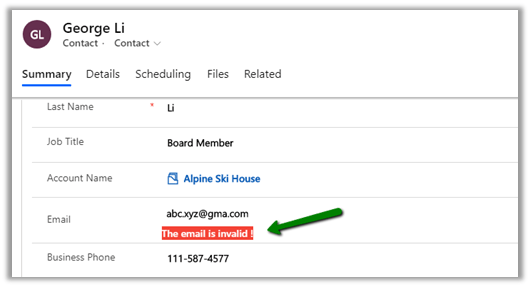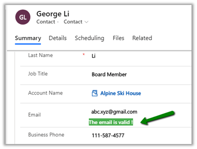 The control will check pass on the email address and based on the response received i.e. isValid true or false, will display the appropriate message just below the field.