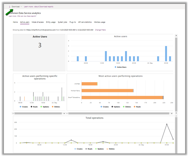 We can get the different metrics about the usage of the platform like active user usage, the operation performed, the entity used, plugins and API statics, etc. through Command Data Service Analytics (formerly Organization Insights).