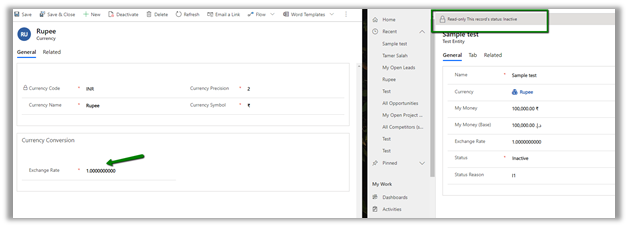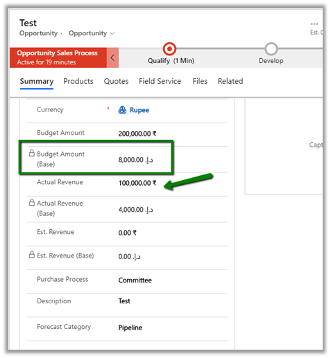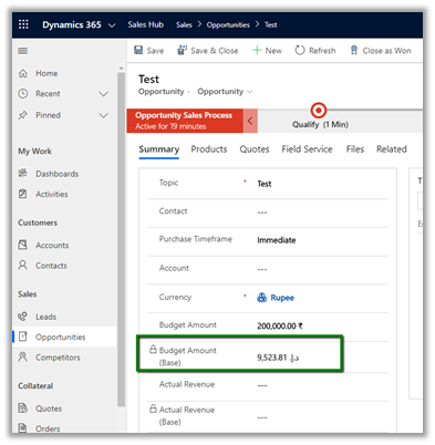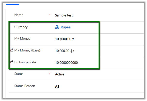 - Updating the status of the record will also update the base currency as shown below.