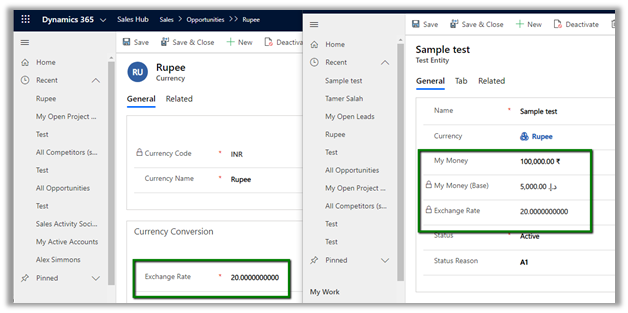 - We can write a console application or SSIS packages that will update the money field of the existing records, whenever the exchange rate is updated to trigger the recalculation of the base currency field if needed.