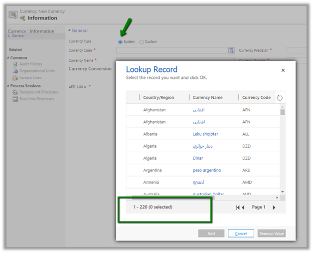 For system currency, we can select any of the existing currency code.